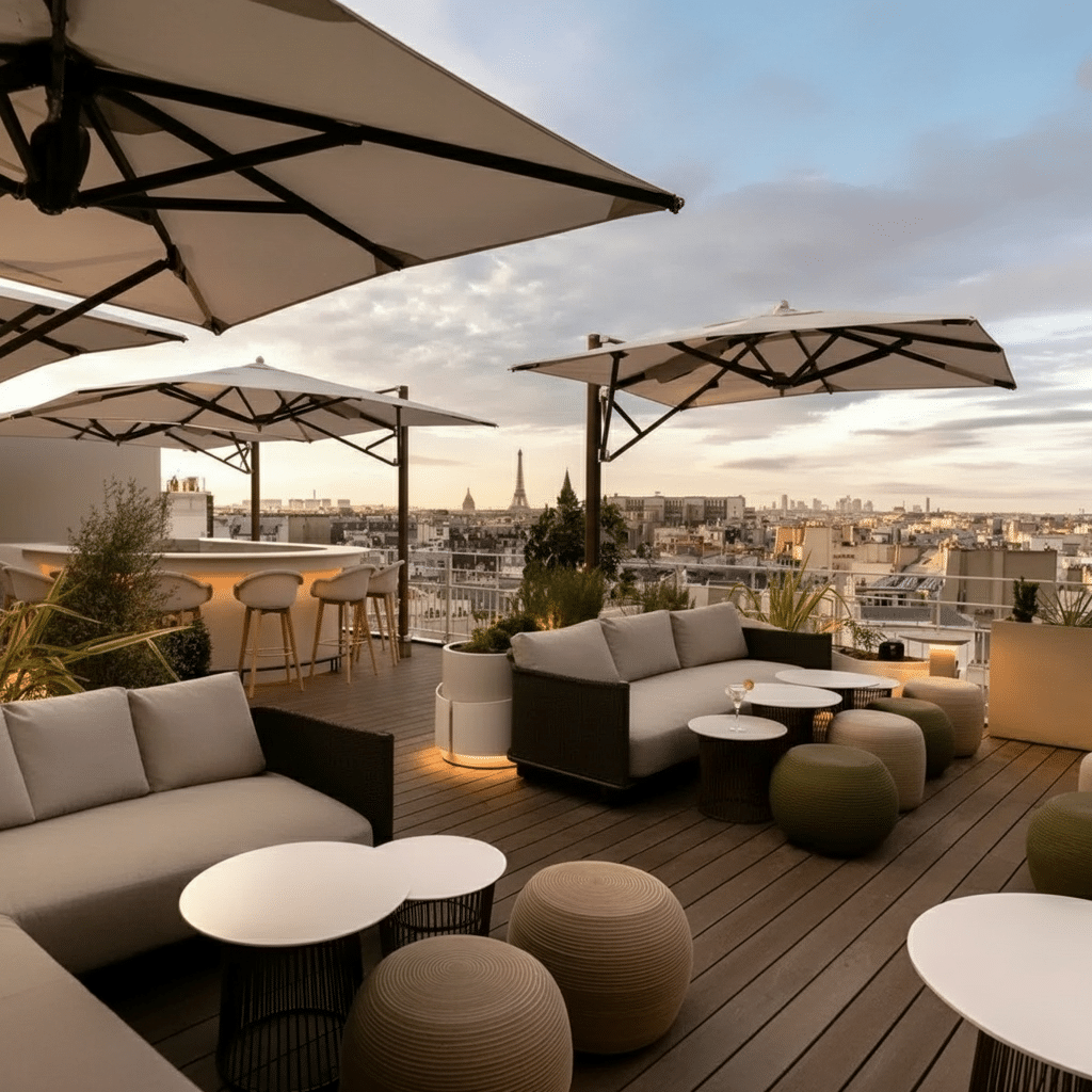 Perché au sommet de l’Hôtel Dame des Arts, le rooftop de l’hôtel dame des arts est un véritable joyau de la vie nocturne parisienne. Ce bar paris est une destination prisée pour ceux qui cherchent à savourer un cocktail en fin de soirée tout en profitant d’une vue panoramique à couper le souffle sur la Ville Lumière.