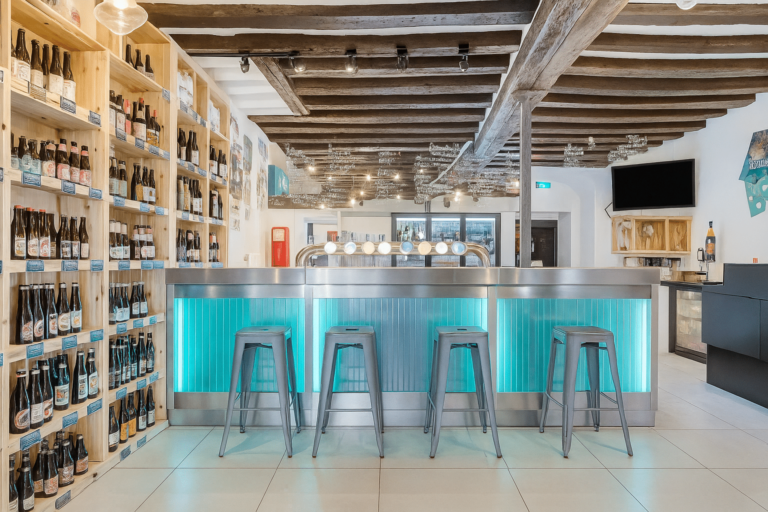 Pénétrez dans ce bar paris et laissez-vous immerger dans une atmosphère où la bière est reine. Le bar dégage une ambiance chaleureuse et amicale, avec son intérieur de bois naturel et ses lumières tamisées qui créent une atmosphère cosy et décontractée. Le bar est orné de nombreuses bouteilles de bières du monde entier, disposées sur les étagères et le long des murs, reflétant l’engagement du lieu envers une expérience brassicole authentique.
