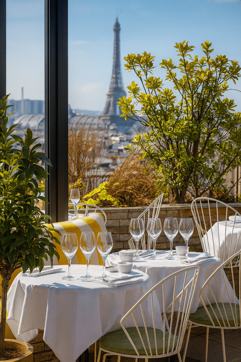 Venez nous rendre visite au dernier étage du Printemps Haussmann, et plongez dans une expérience incomparable en plein cœur de Paris. Pour une expérience sereine, pensez à réserver votre table, surtout durant les périodes d’affluence.